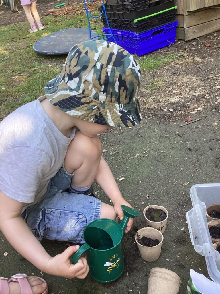 In the warmer weather we thought of creative ways to help the children stay cool. For example, they have enjoyed using tarpaulins to create shade and playing water games with the parachute!