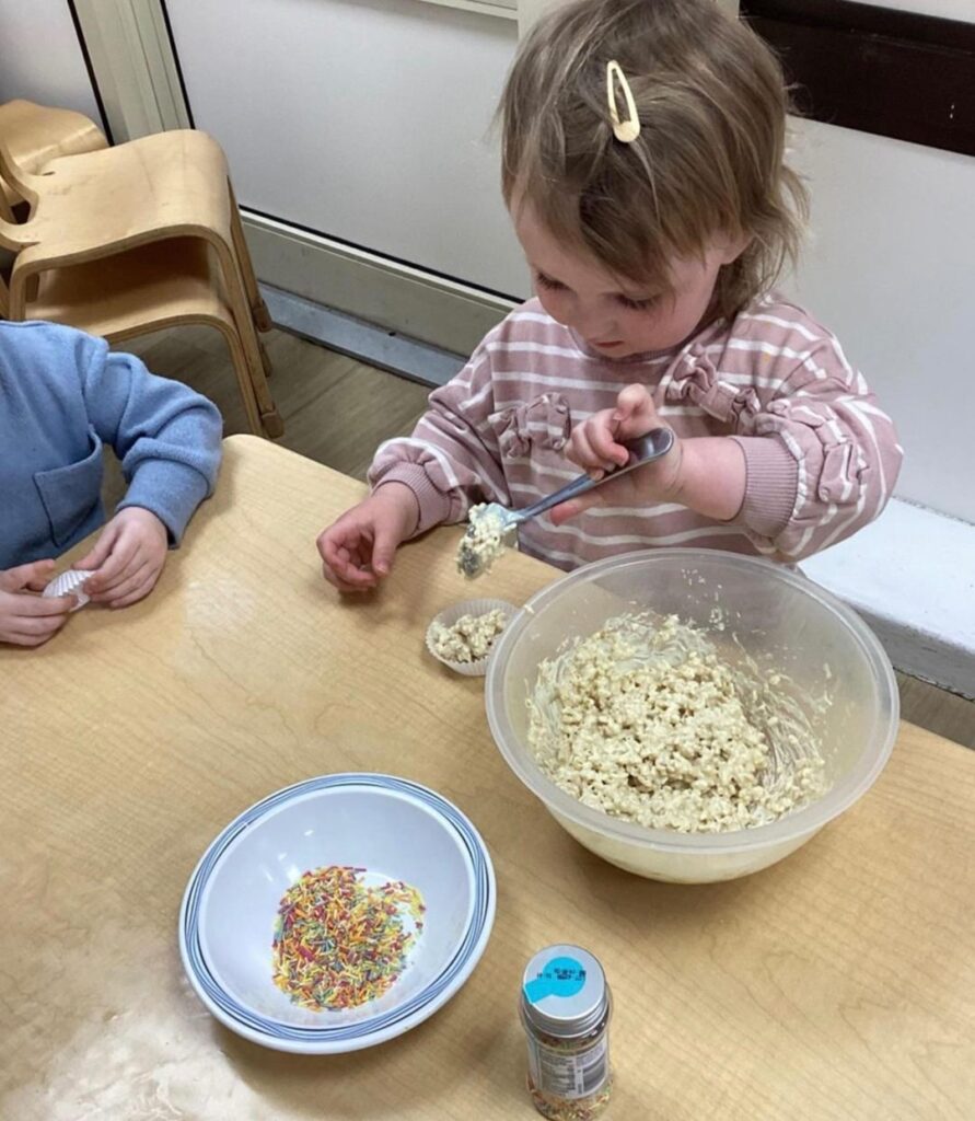 Our Easter activities have included decorating our own Easter eggs using a range of different resources such as feathers and Pom poms. We have made our own crispy cakes to take home, the children followed instructions brilliantly as they counted out the cups of rice crispies as they poured them in. They then mixed it and scooped it up into cake cases themselves. The children have also used paint to paint their own Easter bunny’s. 🐰